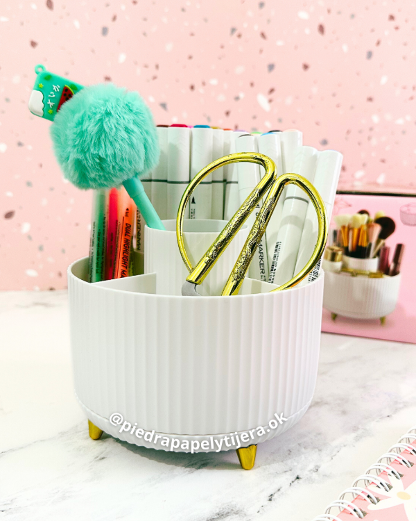 Organiza tu espacio de trabajo de manera funcional y estética con el Organizador Ibi Craft Para Escritorio Giratorio 360°. Incluye cinco compartimentos ideales para guardar lápices, bolígrafos, notas adhesivas y otros utensilios de oficina que necesites tener a mano.