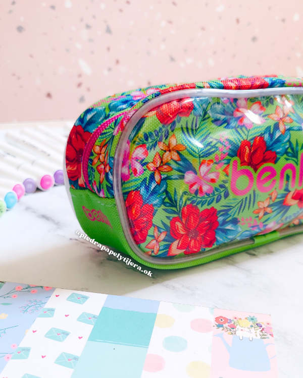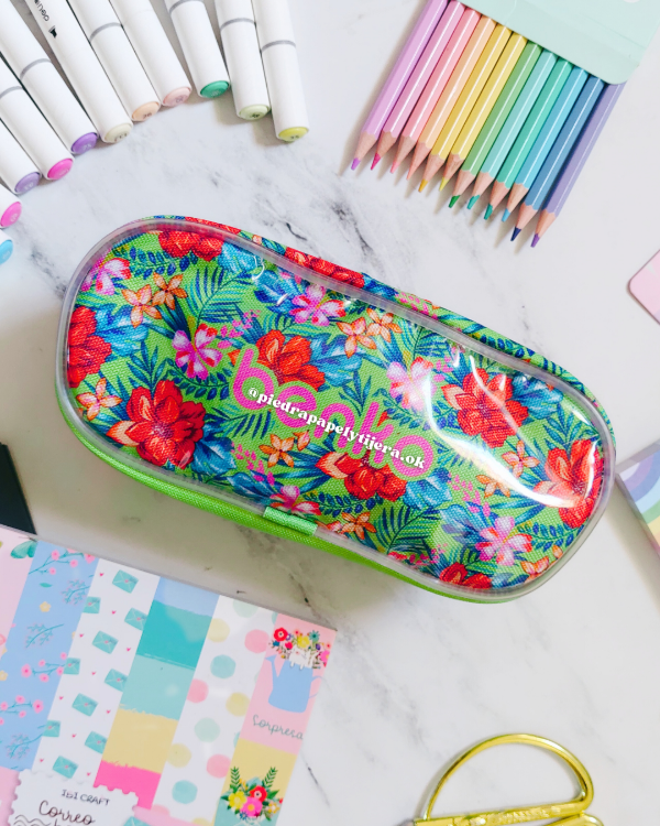 1 cierre, la medida justa para llevar 12 lapices, goma, sacapuntas, regla de 15cm, tijera y plasticola.