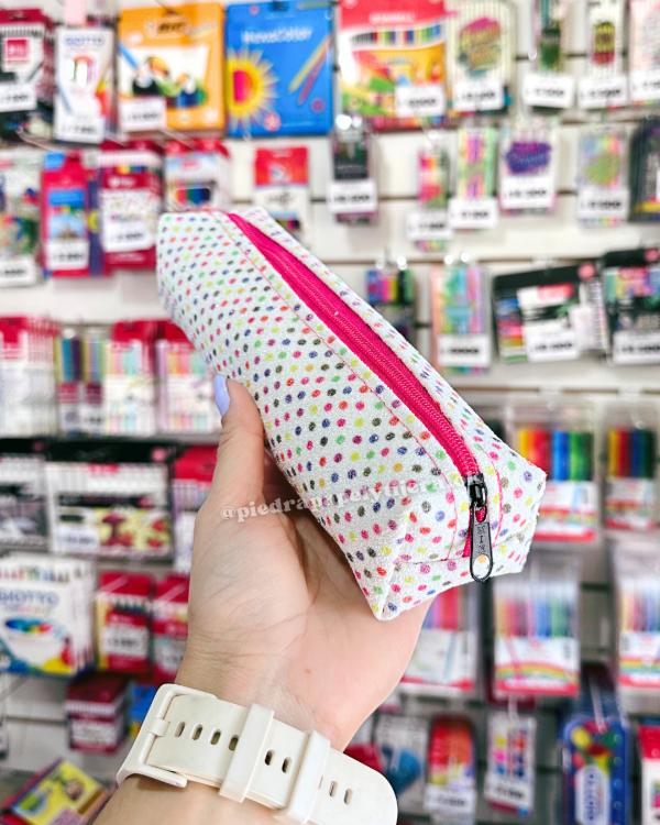 Cartuchera tubo mediano blanca puntos