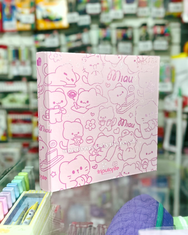 Carpeta 3 anillos miau rosa
