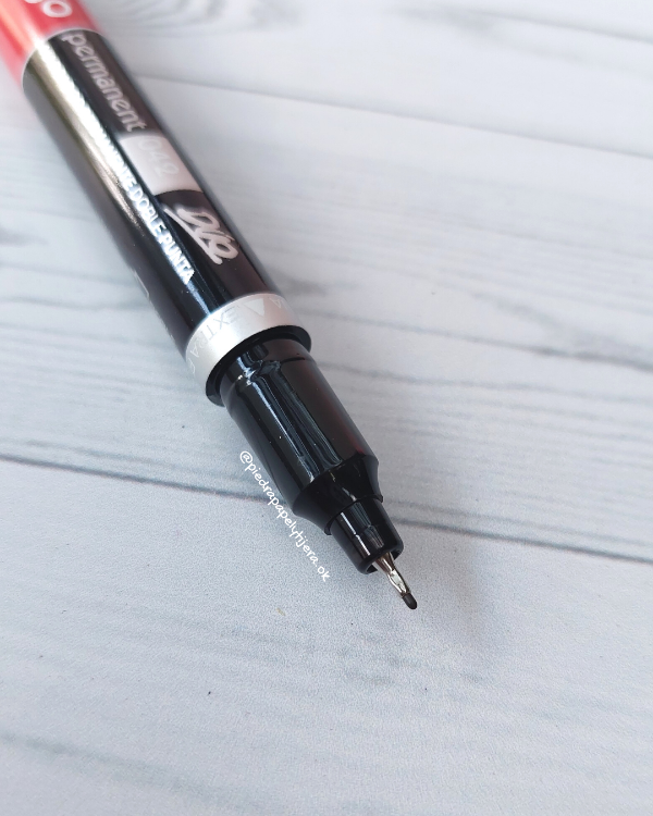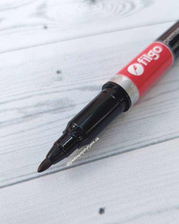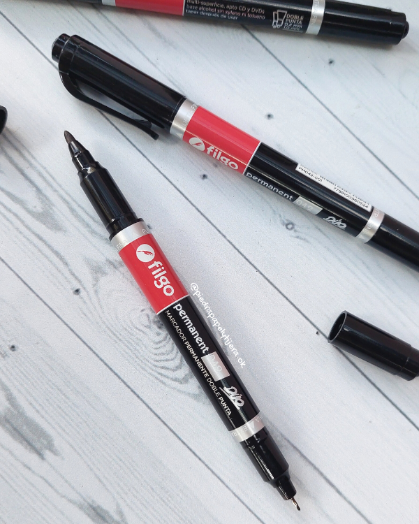 con dos puntas, de un lado el trazo es de 1mm y del otro lado de 0,4mm