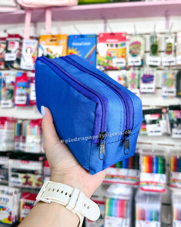 Cartuchera doble cierre azul