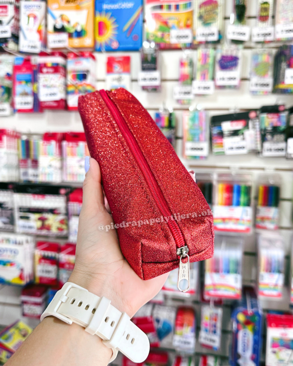 Cartuchera tubo mediano rojo glitter